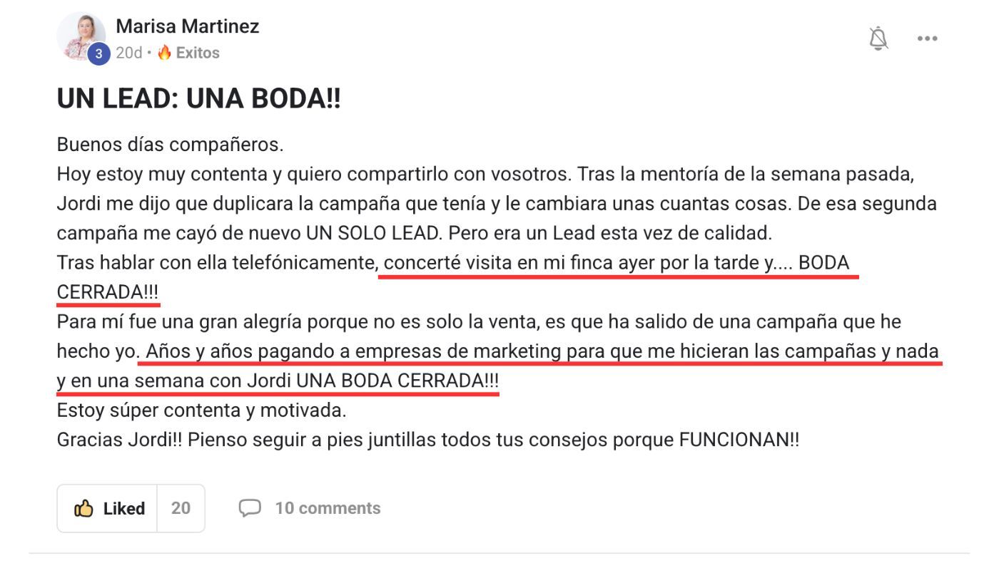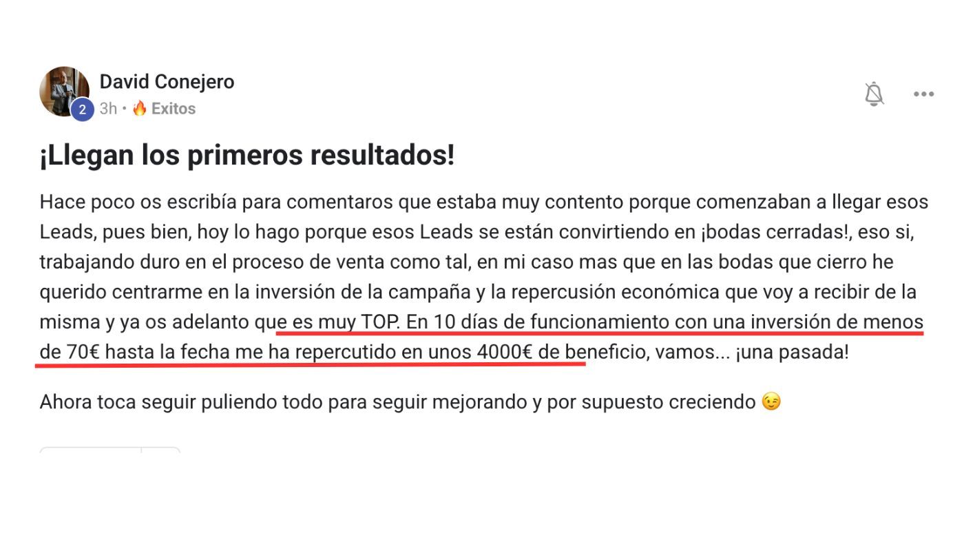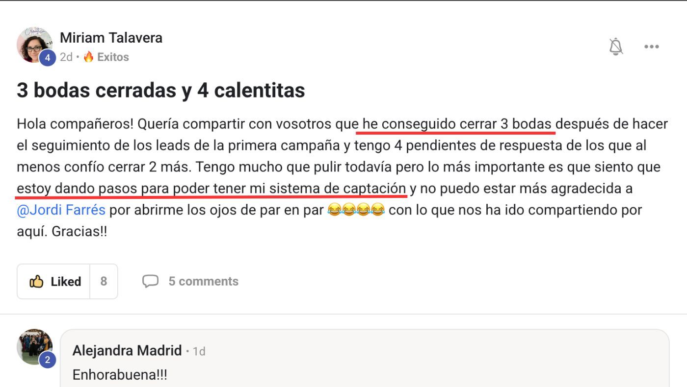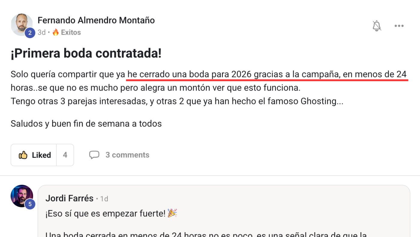 Son historias reales de proveedores de bodas en activo que están usando la metodologia BRIDEBUSTERS.